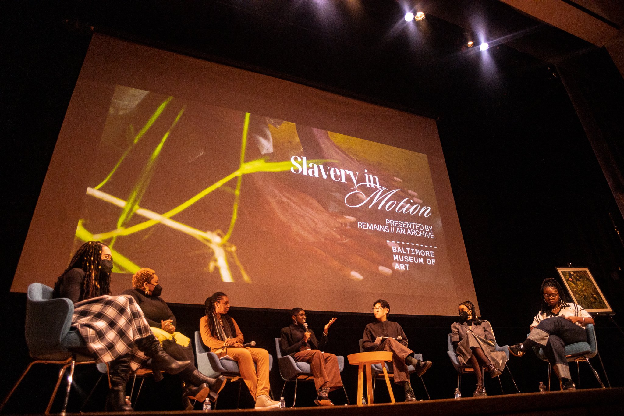 The Slavery in Motion public event was presentation and conversation with members of Remains // An Archive Jessica Newby, Samantha Stephens, and Kevin Ah-Sen as we discussed the inspiration for the multimedia art collection with featured artists: Romaine McNeil, Tatiana Esh, Sha-Shonna Rogers, and Julia Mallory.